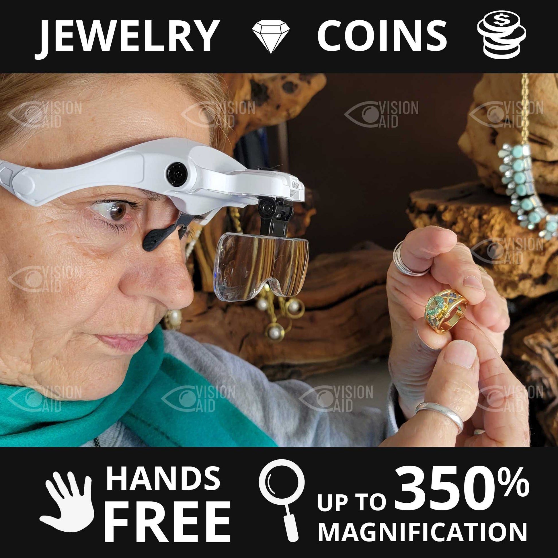 VISIONAID™ Magnifying Glasses with LED Light, Headband, 5 Lenses - USB Rechargeable